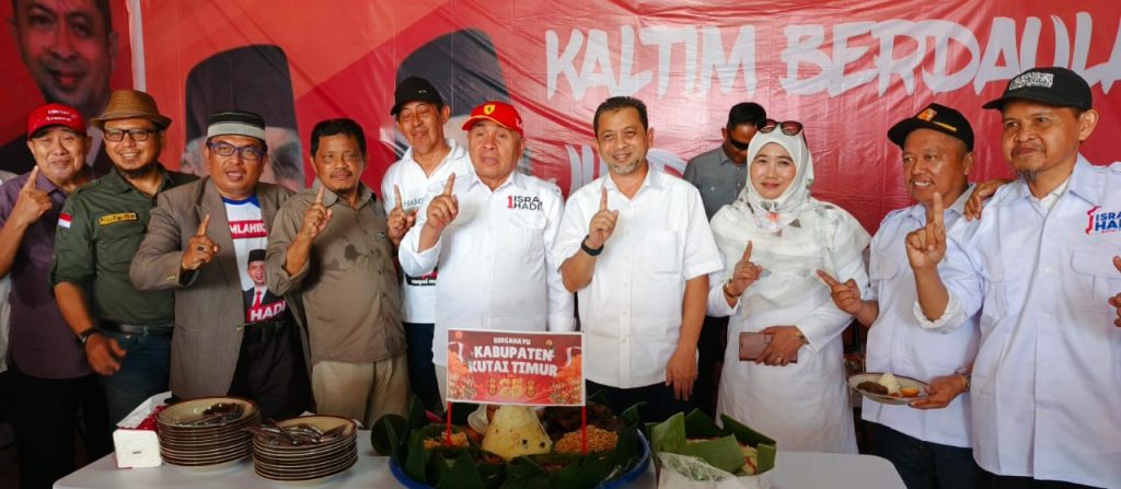 Kutai Timur, 24 Oktober 2024 – Tim Kampanye Provinsi dan Kabupaten Kutai Timur untuk pasangan Isran-Hadi menggelar acara penyambutan, syukuran, dan pemotongan tumpeng di Posko Relawan Isran-Hadi Kutim, Sangatta, pada Kamis, 24 Oktober 2024. Acara ini berlangsung dari pukul 13.30 hingga 14.30, dihadiri oleh sekitar 70 peserta yang terdiri dari tim sukses dan relawan Isran-Hadi Kutai Timur, serta tokoh masyarakat dan tokoh agama setempat.