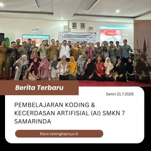 Samarinda, 25 Juli 2025 — Dalam rangka memperkuat peran guru sebagai agen transformasi pendidikan digital, Lembaga Penyelenggara Diklat (LPD) Yayasan Pinbuk Indonesia menyelenggarakan pelatihan bertajuk “Pembelajaran Koding & Kecerdasan Artifisial (AI)” yang berlangsung selama lima hari, dari tanggal 21 hingga 25 Juli 2025 di SMKN 7 Samarinda, Kalimantan Timur.